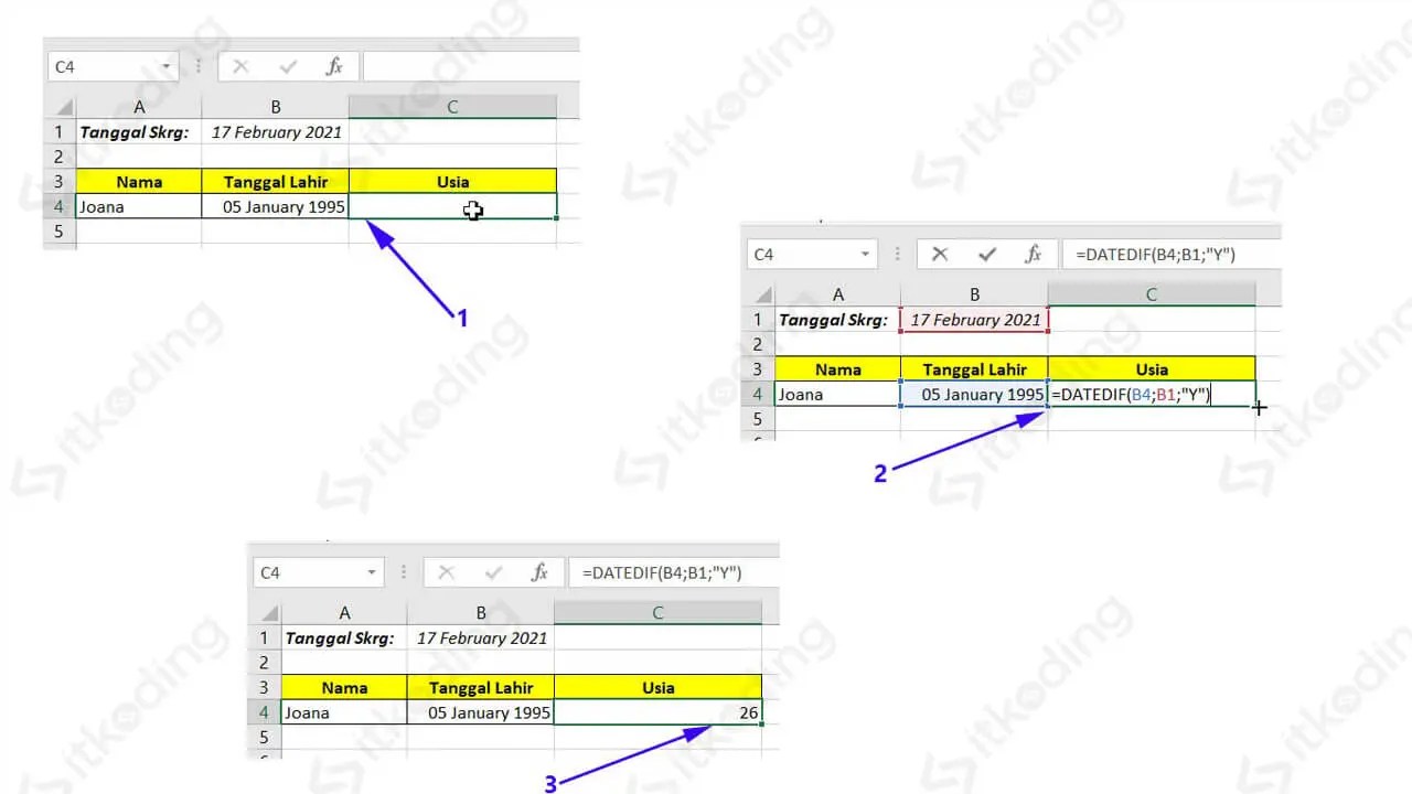 Rumus excel untuk menghitung umur atau usia sesorang berdasarkan.